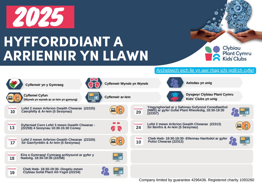 Cyrsiau hyfforddi ar gael 2026 – Trefnwch le nawr