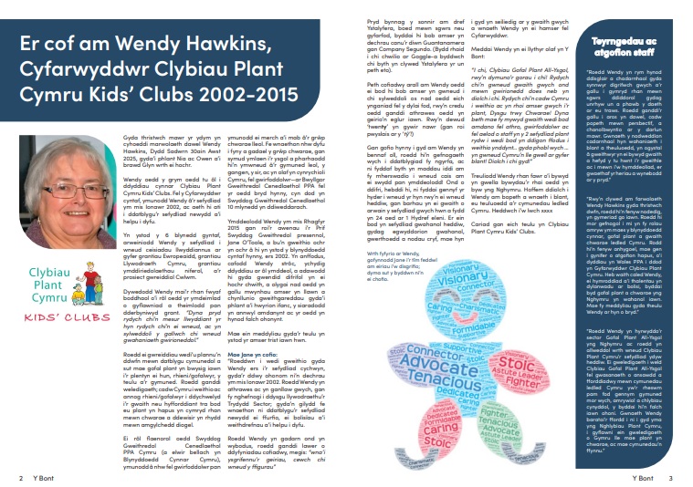 Er cof am Wendy Hawkins, Cyfarwyddwr Clybiau Plant Cymru Kids’ Clubs 2002-2015