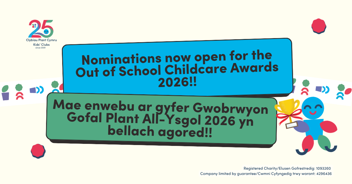 Rydym yn falch i gyhoeddi bod enwebiadau bellach ar agor ar gyfer Gwobrau Gofal Plant All-Ysgol 2026!